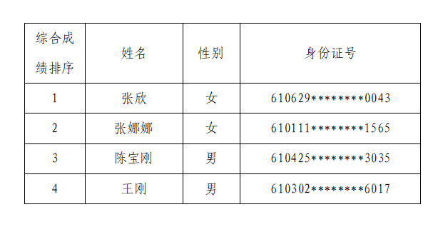 陜西有色金屬集團(tuán)選配總部紀(jì)檢監(jiān)察一般工作人員公開報(bào)名、資格初審、筆試、資格復(fù)審、面試等程序已經(jīng)結(jié)束,按照綜合成績排序,現(xiàn)將擬聘用的4名人員情況予以公示。