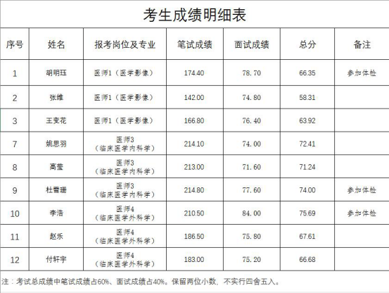 西北有色醫(yī)院2021年省屬事業(yè)單位公開(kāi)招聘面試環(huán)節(jié)已經(jīng)結(jié)束,依據(jù)《事業(yè)單位人事管理?xiàng)l例》《陜西省事業(yè)單位公開(kāi)招聘工作人員實(shí)施辦法》及2021年陜西省省屬事業(yè)單位公開(kāi)招聘工作人員公告要求,考試總成績(jī),按照與崗位招聘計(jì)劃1:1的比例從高分到低分確定參加體檢人員。現(xiàn)將有關(guān)事項(xiàng)公告如下: