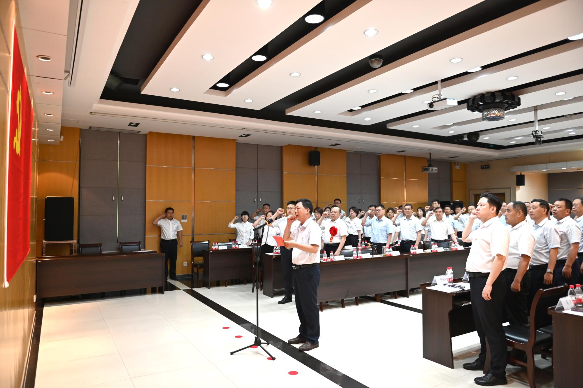 隨后,高菊生帶領(lǐng)全體黨員在黨旗下莊嚴(yán)宣誓,與會人員重溫入黨誓詞。鏗鏘的誓詞,讓在場的每一位黨員都得到了精神的洗禮和黨性的錘煉。