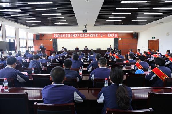 為深入學(xué)習(xí)貫徹習(xí)近平新時(shí)代中國(guó)特色社會(huì)主義思想和黨的二十大精神,熱烈慶祝中國(guó)共產(chǎn)黨成立102周年,6月30日,天瑞硅材料隆重召開(kāi)慶祝中國(guó)共產(chǎn)黨成立102周年暨“七一”表彰大會(huì)。會(huì)議由公司黨委委員、副總經(jīng)理劉建中主持,公司黨委副書(shū)記、總經(jīng)理蘇旭盛出席會(huì)議并講話(huà),公司領(lǐng)導(dǎo)班子成員、“兩優(yōu)一先”獲得者、黨員中層干部、黨員代表60余人參加會(huì)議。