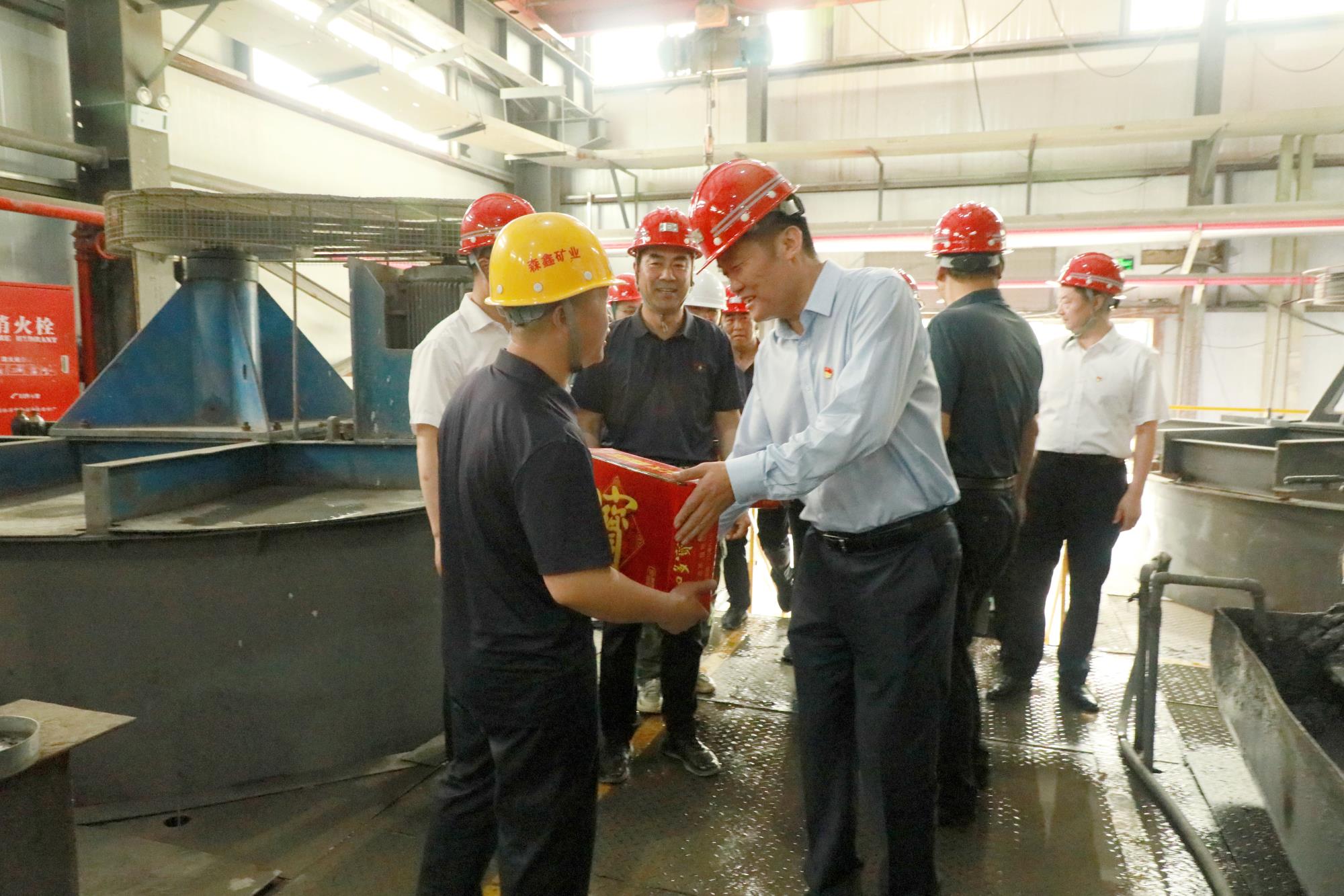 7月4日,陜西有色金屬集團黨委副書記、董事、工會主席王小慶到森鑫礦業(yè)公司調(diào)研指導(dǎo)工作,講授黨紀學(xué)習(xí)教育專題黨課并開展“送清涼”慰問活動。地礦集團、黃金集團黨委書記、董事長秦西社等陪同調(diào)研。