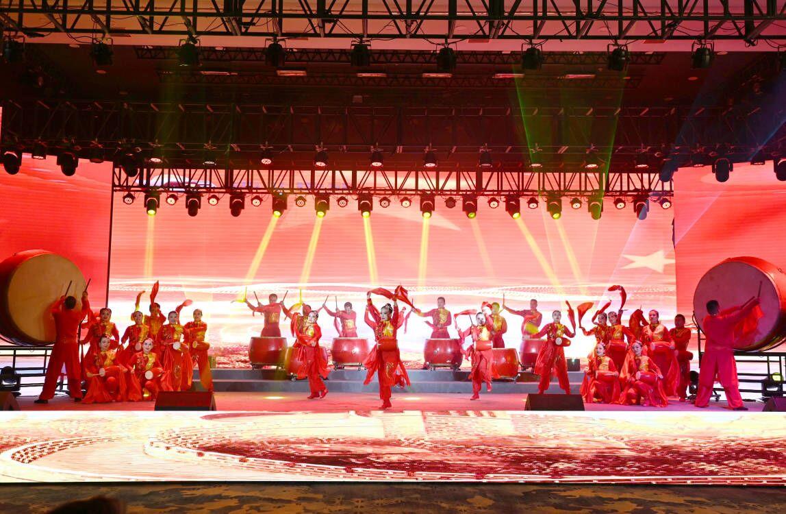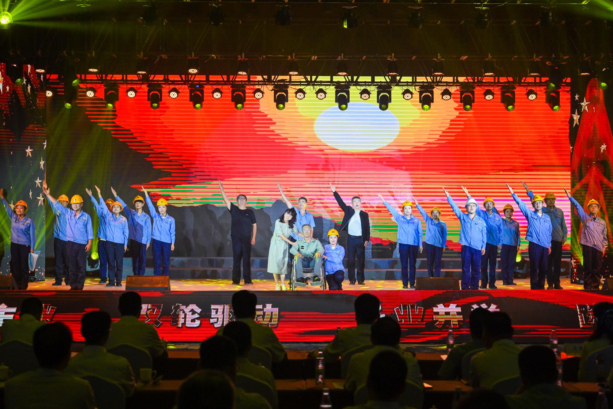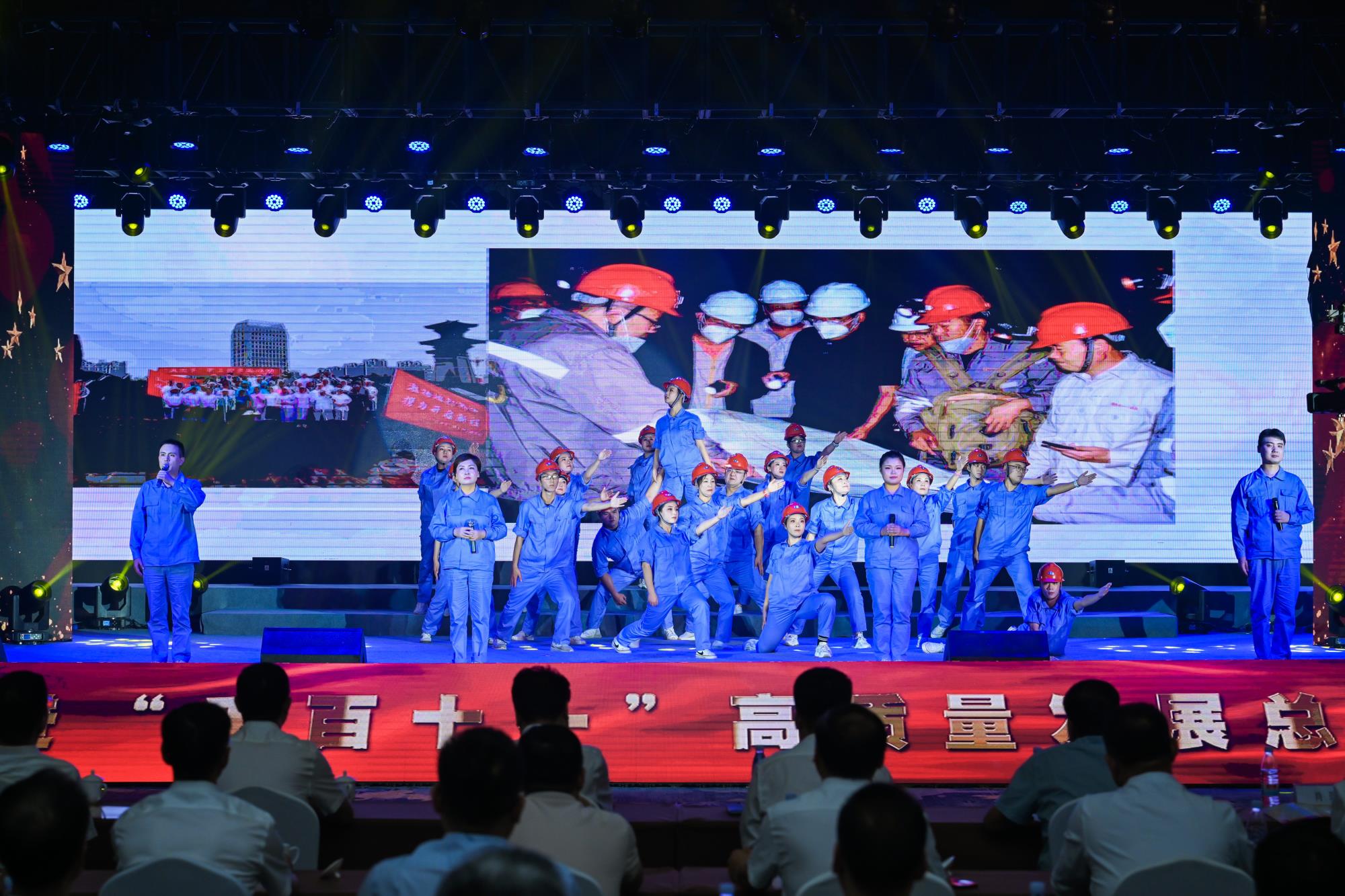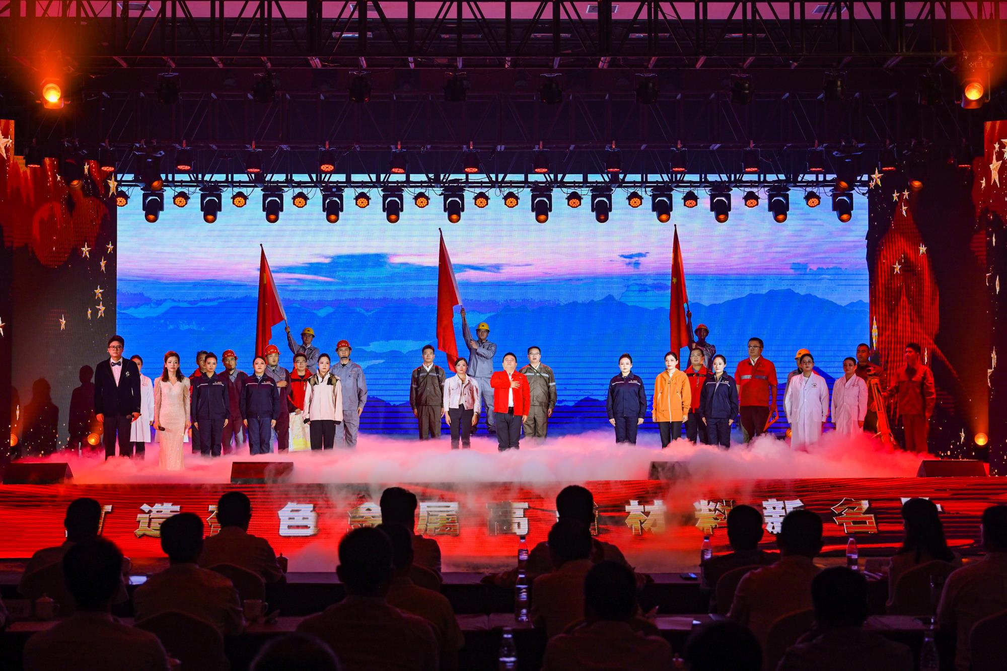 “我們都是奮斗者,報國夙愿挺身償。勇立潮頭搏浪去,萬眾攻堅鑄輝煌。肩擔(dān)著使命創(chuàng)偉業(yè),復(fù)興路上圓夢想!”一首首動人的歌曲,一段段優(yōu)美的舞蹈,一句句深情的朗誦,傳遞著對偉大祖國的無限祝福,對有色事業(yè)的執(zhí)著熱愛,對美好生活的熾熱向往,凝聚起廣大職工為實現(xiàn)中國夢、強企夢而不懈奮斗的壯志豪情。以磐石之志,堅地質(zhì)初心,廣大職工表示將立足本職、擔(dān)當(dāng)作為,為實現(xiàn)兩集團(tuán)高質(zhì)量跨越發(fā)展,奮進(jìn)陜西有色金屬集團(tuán)“千百十一”總目標(biāo)再創(chuàng)佳績、再立新功。兩集團(tuán)領(lǐng)導(dǎo)班子成員、部分外部董事,機關(guān)全體人員,權(quán)屬單位主要負(fù)責(zé)人、工會主席、受表彰代表和職工代表等300余人在現(xiàn)場觀看演出。本次活動通過新媒體平臺進(jìn)行了圖片直播,截至發(fā)稿前,累計吸引12萬余人次線上觀看。