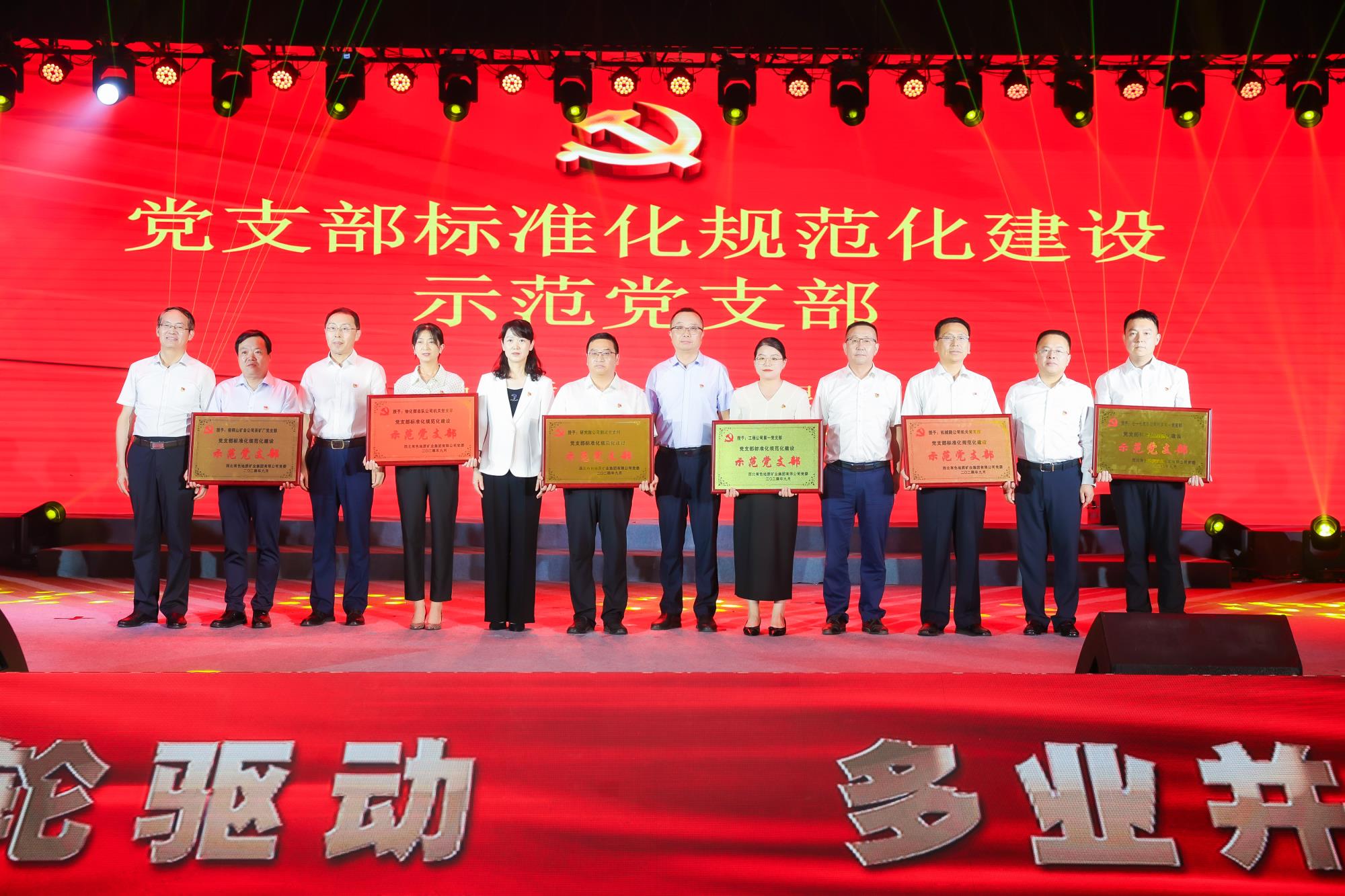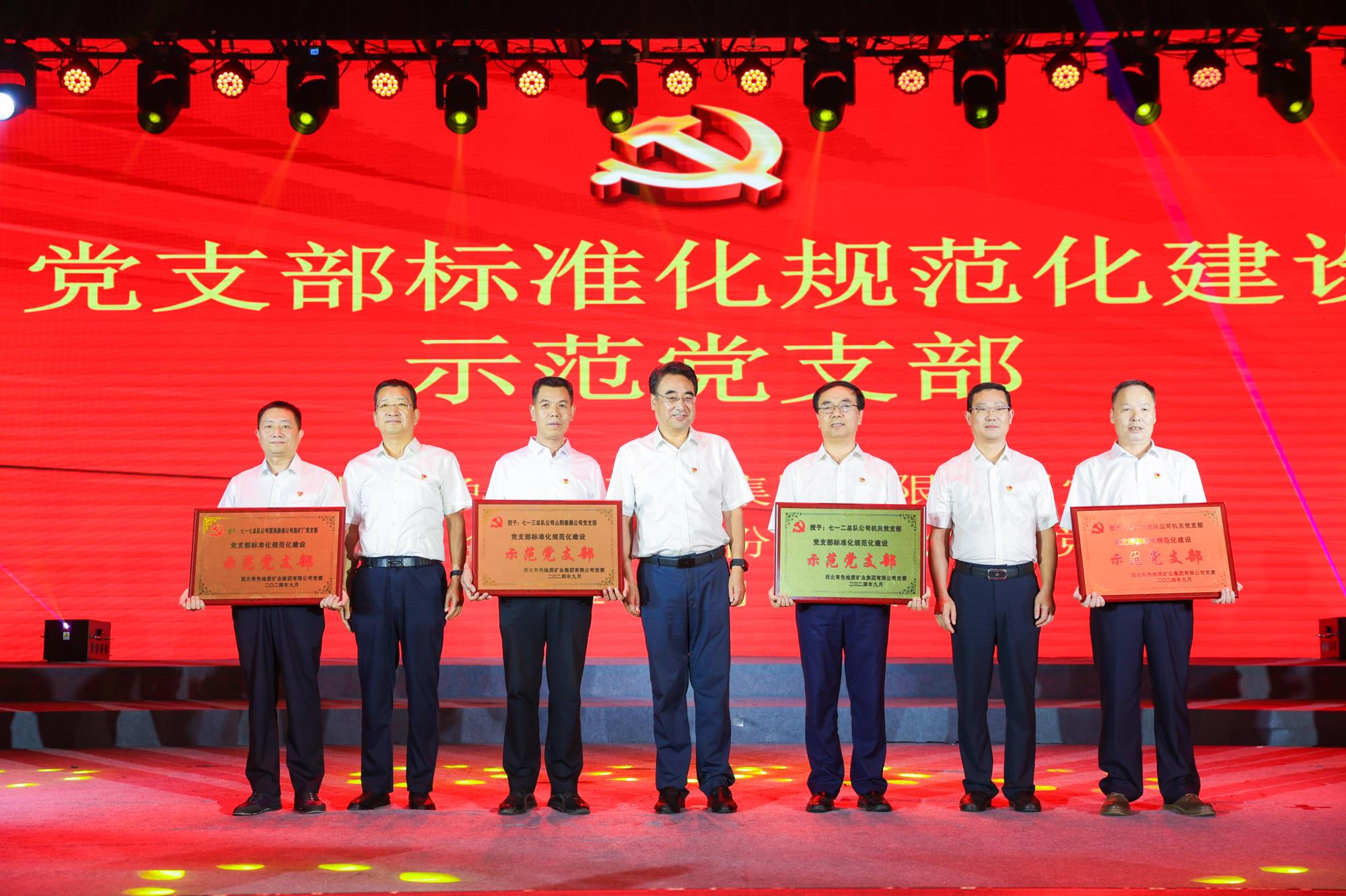 陜西有色金屬集團(tuán)黨委副書記、董事、工會主席王小慶,工會常務(wù)副主席張繼祥應(yīng)邀出席。陜西有色金屬集團(tuán)董事,兩集團(tuán)黨委書記、董事長秦西社為表彰大會致辭。兩集團(tuán)黨委副書記、工會主席肖璐宣讀表彰決定。大會為示范黨支部、兩集團(tuán)命名的權(quán)屬單位黨建品牌進(jìn)行了授牌,為黨支部書記“比業(yè)務(wù)、賽成績、亮經(jīng)驗”黨建業(yè)務(wù)模擬展演優(yōu)秀作品進(jìn)行頒獎。