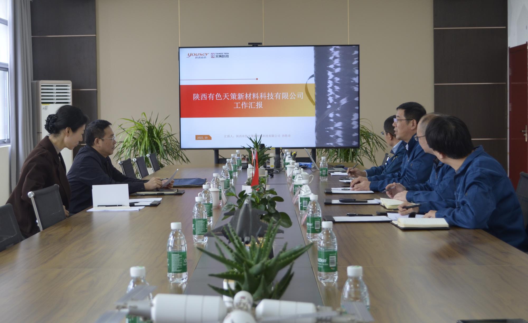 10月21日,陜西有色金屬集團(tuán)黨委副書記郭仕龍率隊(duì)赴陜西有色天策新材料科技有限公司(以下簡稱“天策科技”)調(diào)研黨建工作。天策科技黨支部書記、董事長孫勝奇陪同調(diào)研。