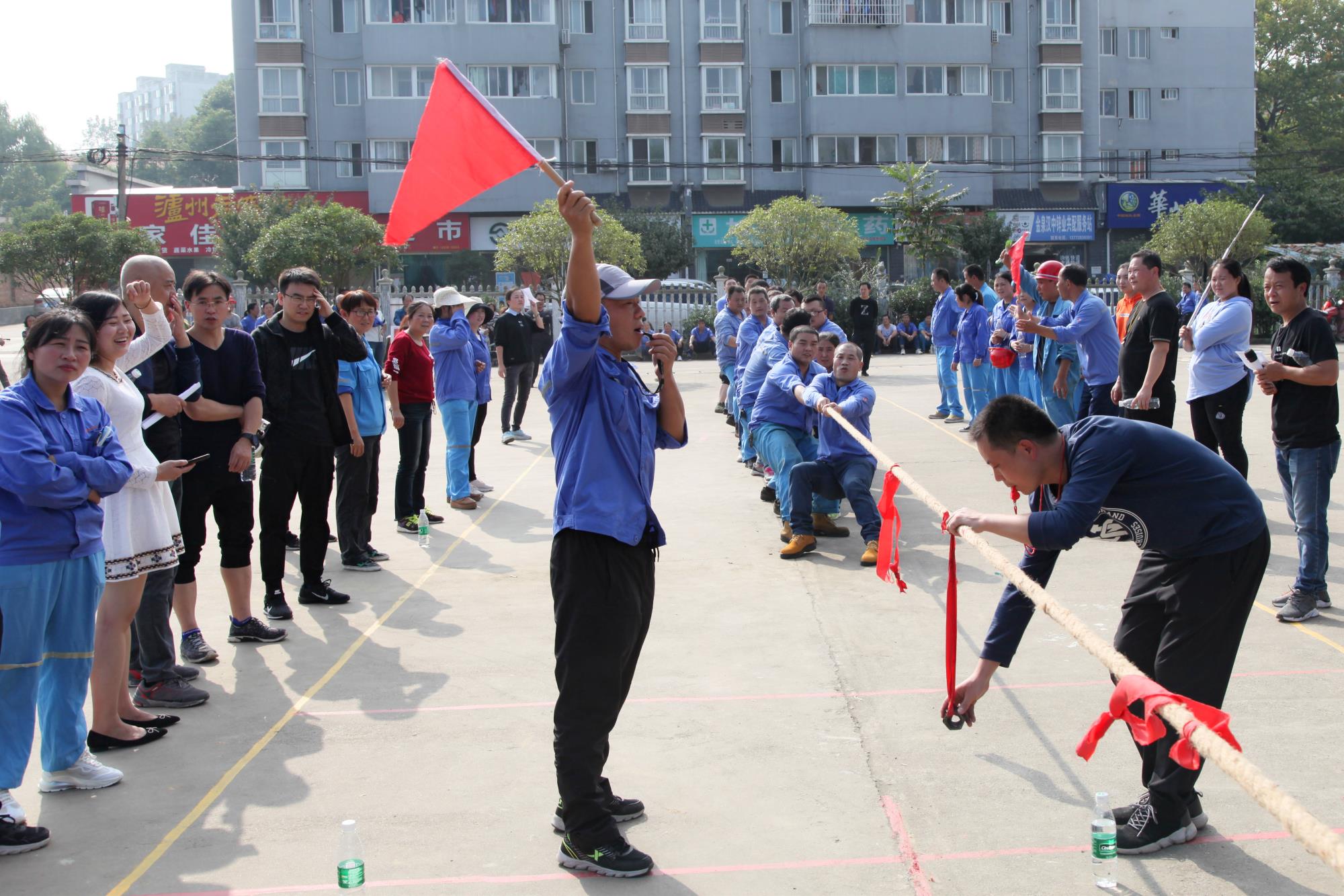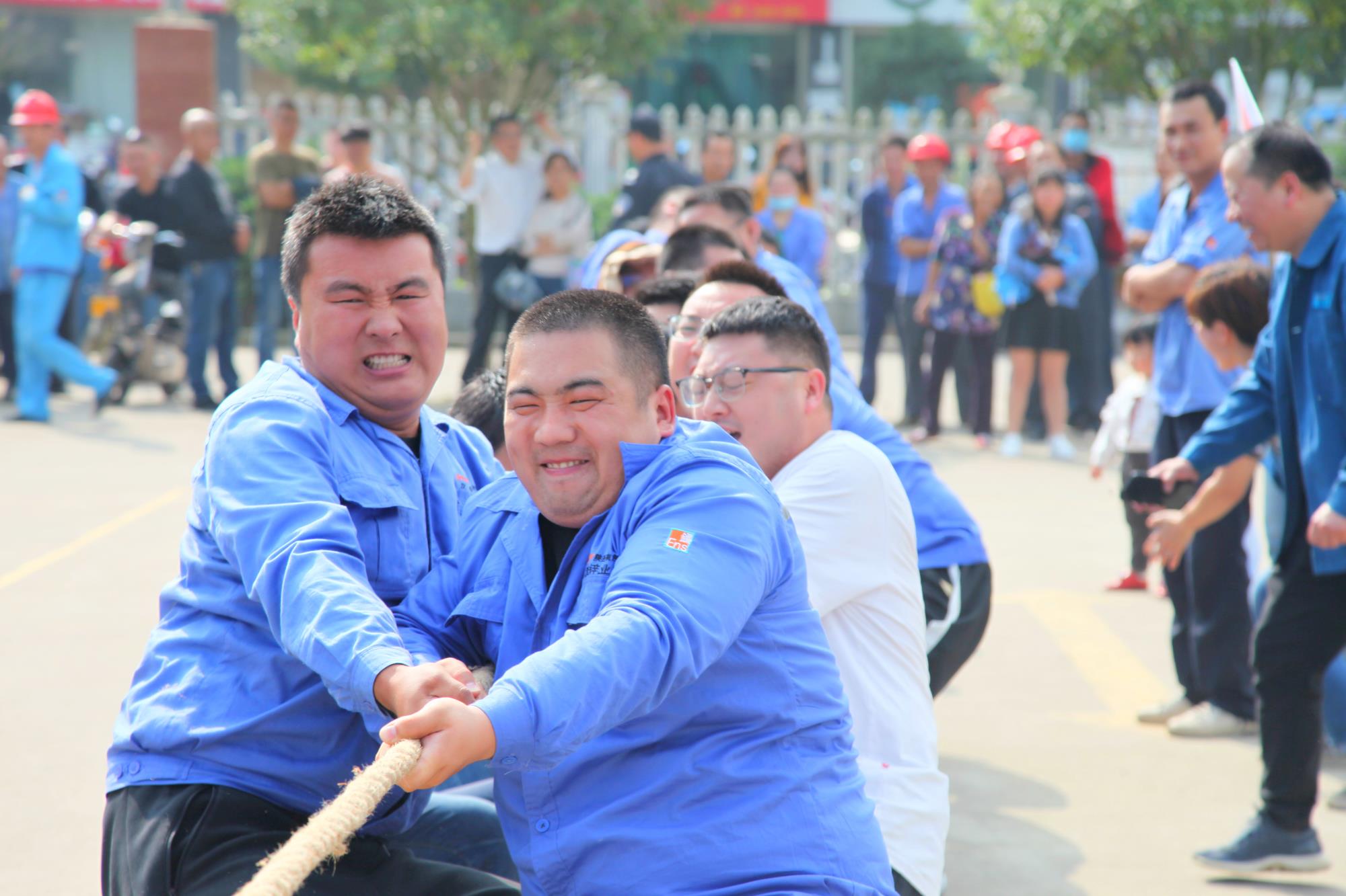 金風送爽,丹桂飄香。下午14時30分,公司總部職工文化活動中心人聲鼎沸,熱鬧非凡。拔河比賽在緊張、激烈的氣氛中開始,在宣布完比賽規(guī)則,隨著裁判一聲哨響,比賽現場立刻沸騰起來。加油聲此起彼伏,一浪高過一浪!在拉拉隊的“加油”助威聲中,每支參賽隊都卯足了勁,隊員們都漲紅了臉,大家都抓緊了繩,全力以赴,激烈的比賽將整個活動推向了一個又一個高潮!