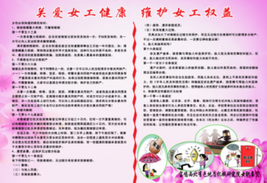 各單位女職委積極宣傳《民法典》《促進(jìn)工作場(chǎng)所性別平等指導(dǎo)手冊(cè)(修訂版)》、《陜西省實(shí)施女職工勞動(dòng)保護(hù)特別規(guī)定》等女職工權(quán)益保護(hù)法律法規(guī),通過廣播平臺(tái)、櫥窗板報(bào)、張貼標(biāo)語、網(wǎng)絡(luò)平臺(tái)等結(jié)合疫情防控進(jìn)行普法宣傳,推動(dòng)普法活動(dòng)深入基層一線、深入女職工中。