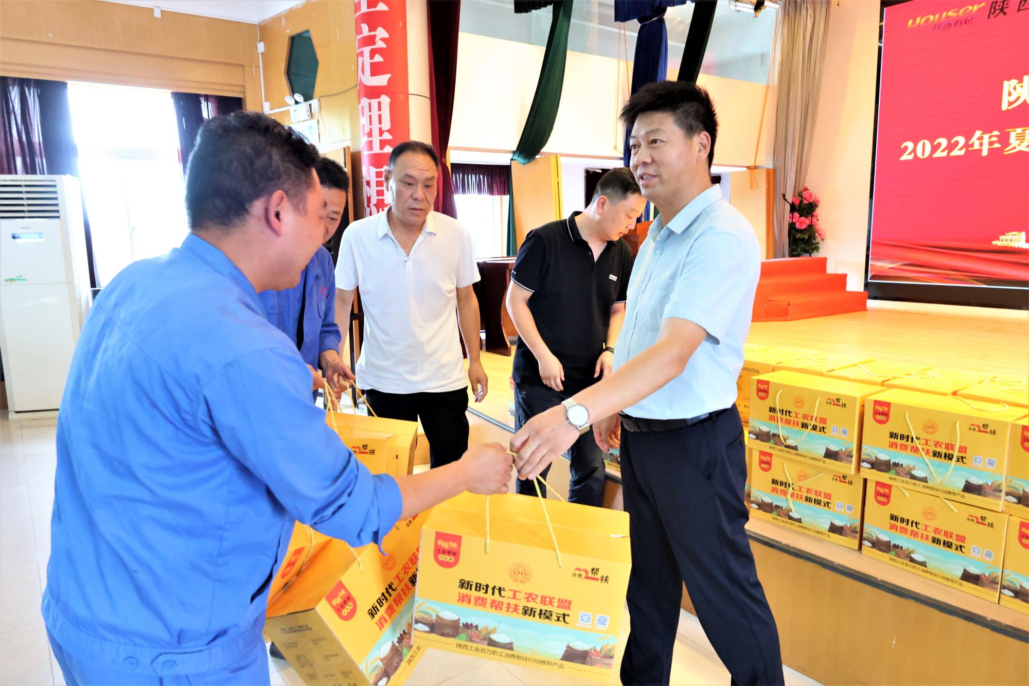在7月15日環(huán)境保護(hù)專題培訓(xùn)會上,陜西鋅業(yè)公司工會代表集團(tuán)公司工會將一批防暑降溫大禮包發(fā)送到一線職工手中,公司黨委副書記路延忠參加發(fā)放儀式。