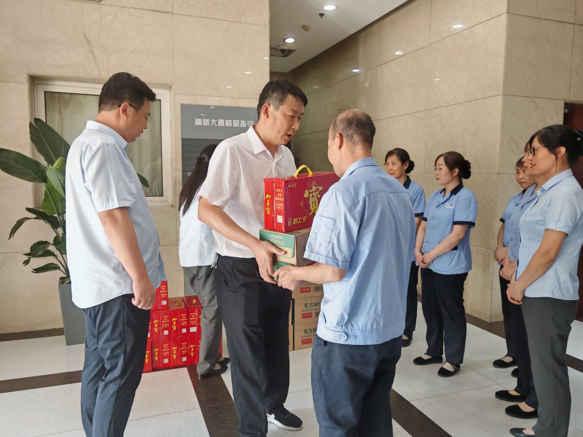 近期,隨著氣溫持續(xù)攀升,酷暑考驗著每一位戶外工作者。面對高溫天氣,在集團公司工會的支持下,西安實業(yè)工會委員會積極組織開展“炎炎夏日送清涼,絲絲關(guān)愛入心田”活動。本次活動由西安實業(yè)副總經(jīng)理、工會主席張保健帶領(lǐng)副主席秦昱,邁特物業(yè)公司總經(jīng)理譚志剛、工會副主席楊萍深入基層,為一線職工送關(guān)懷、送清涼。