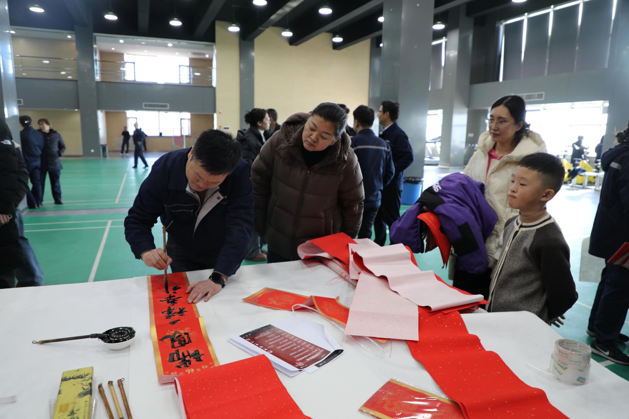 春節(jié)將至,年味漸濃,處處洋溢著喜慶的氛圍。為弘揚中華優(yōu)秀傳統(tǒng)文化,營造歡樂祥和的節(jié)日氛圍,豐富職工精神文化生活,把企業(yè)的關(guān)懷和溫暖送到職工手中,1月14日,榆林新材料集團工會在公司文體中心三樓開展了“迎新春 寫春聯(lián) 送祝?!被顒?。榆林新材料集團黨委副書記、工會主席王新權(quán),公司工會委員、職工書畫協(xié)會成員為公司各單位職工和家屬現(xiàn)場送春聯(lián)、送福字、送祝福。