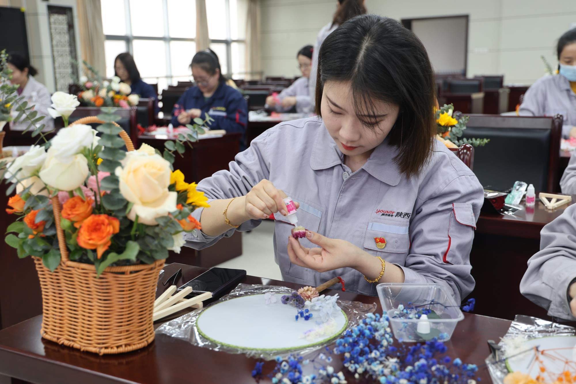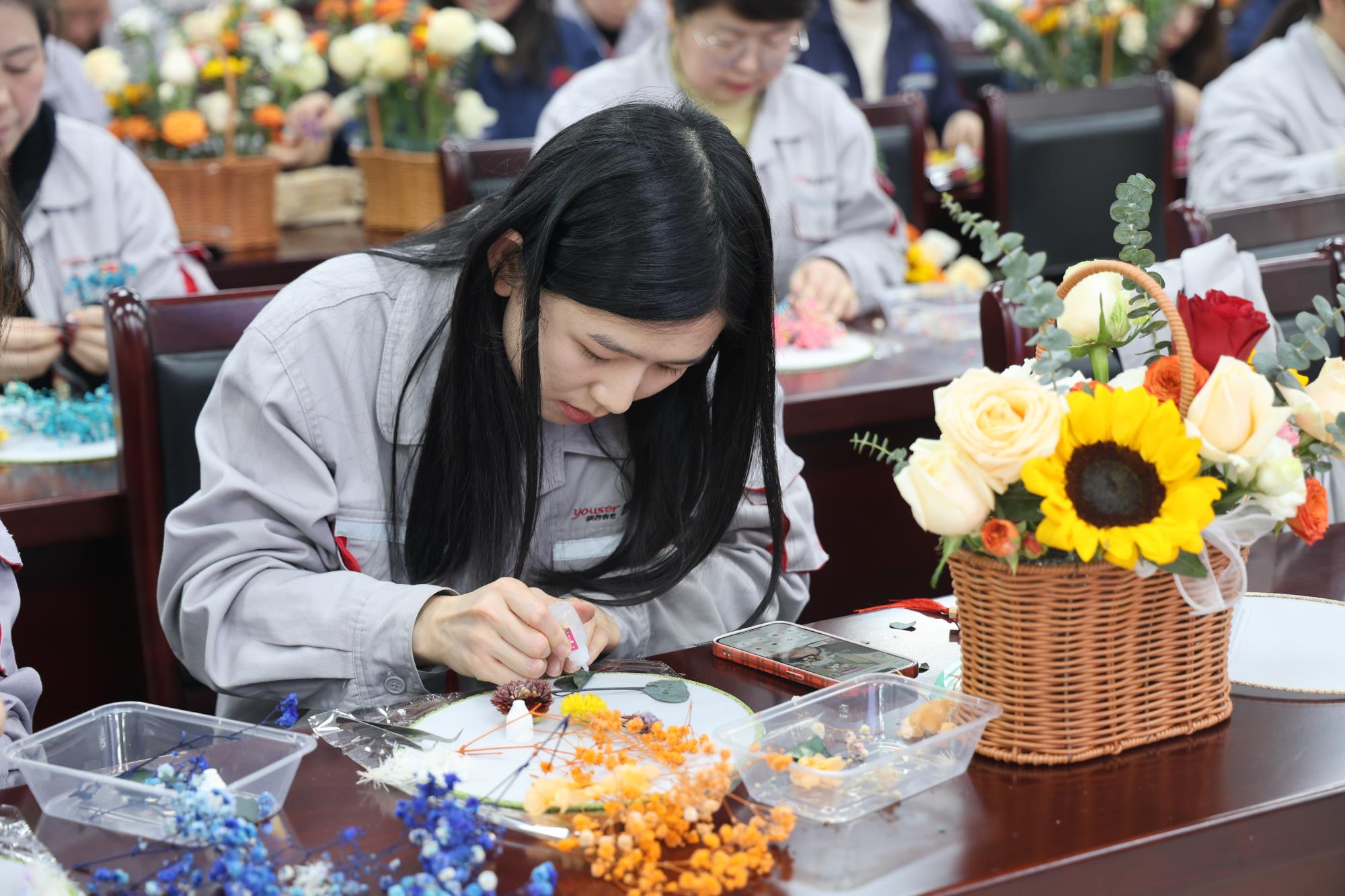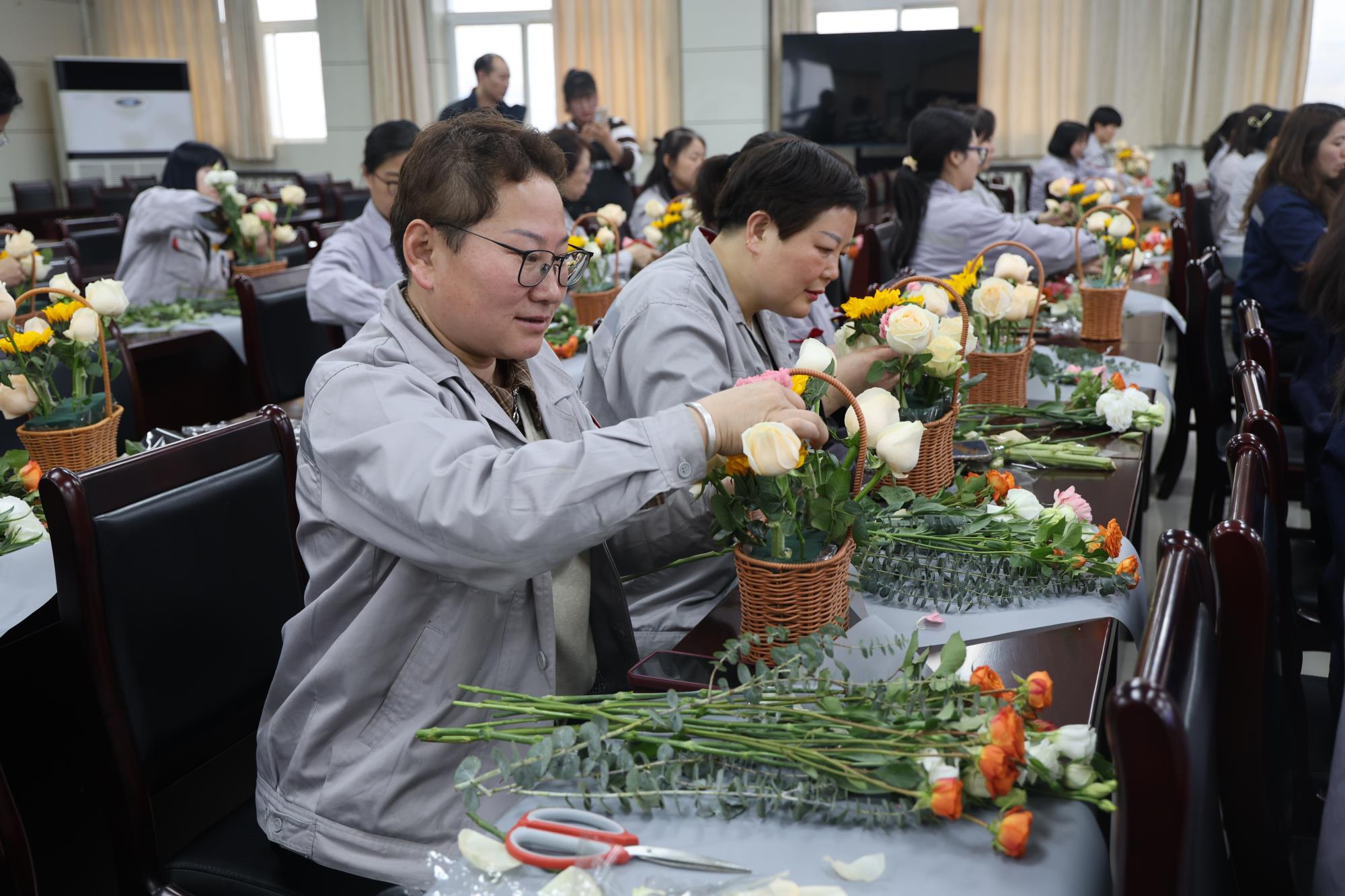 “插花拾趣 悅享生活”插花活動邀請專業(yè)花藝師現(xiàn)場為女工們講解了插花的基本技巧和花語寓意,引導大家根據(jù)自己的喜好和審美,將一束束鮮花巧妙地搭配起來。香檳玫瑰的浪漫、向日葵的朝氣、康乃馨的溫馨……一朵朵鮮花在女工們的巧手下,仿佛被賦予了生命,變成了一件件獨一無二的藝術品。大家一邊插花,一邊交流心得,現(xiàn)場歡聲笑語不斷,氣氛熱烈而融洽。