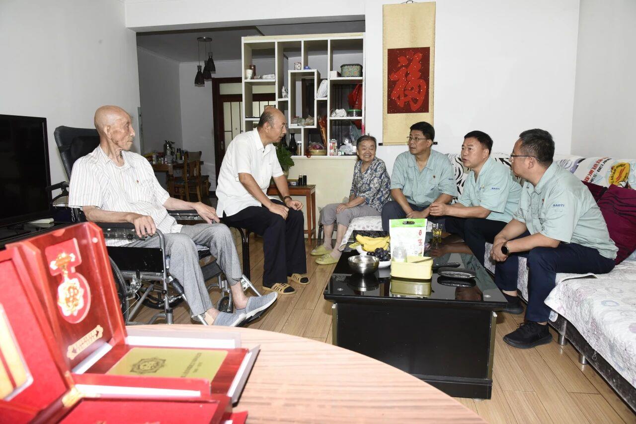 慰問中,賀治民代表集團(tuán)向劉兆華致以崇高敬意,并祝他身體康健、幸福安康。劉兆華家人深情回憶了老人抗戰(zhàn)的烽火歲月和退伍后扎根寶鈦默默奉獻(xiàn)的工作經(jīng)歷,并表示感謝企業(yè)的長(zhǎng)期關(guān)懷,既讓老人感受到了組織的溫暖,也讓后輩更加堅(jiān)定了傳承紅色基因、感恩回饋企業(yè)社會(huì)的信念。