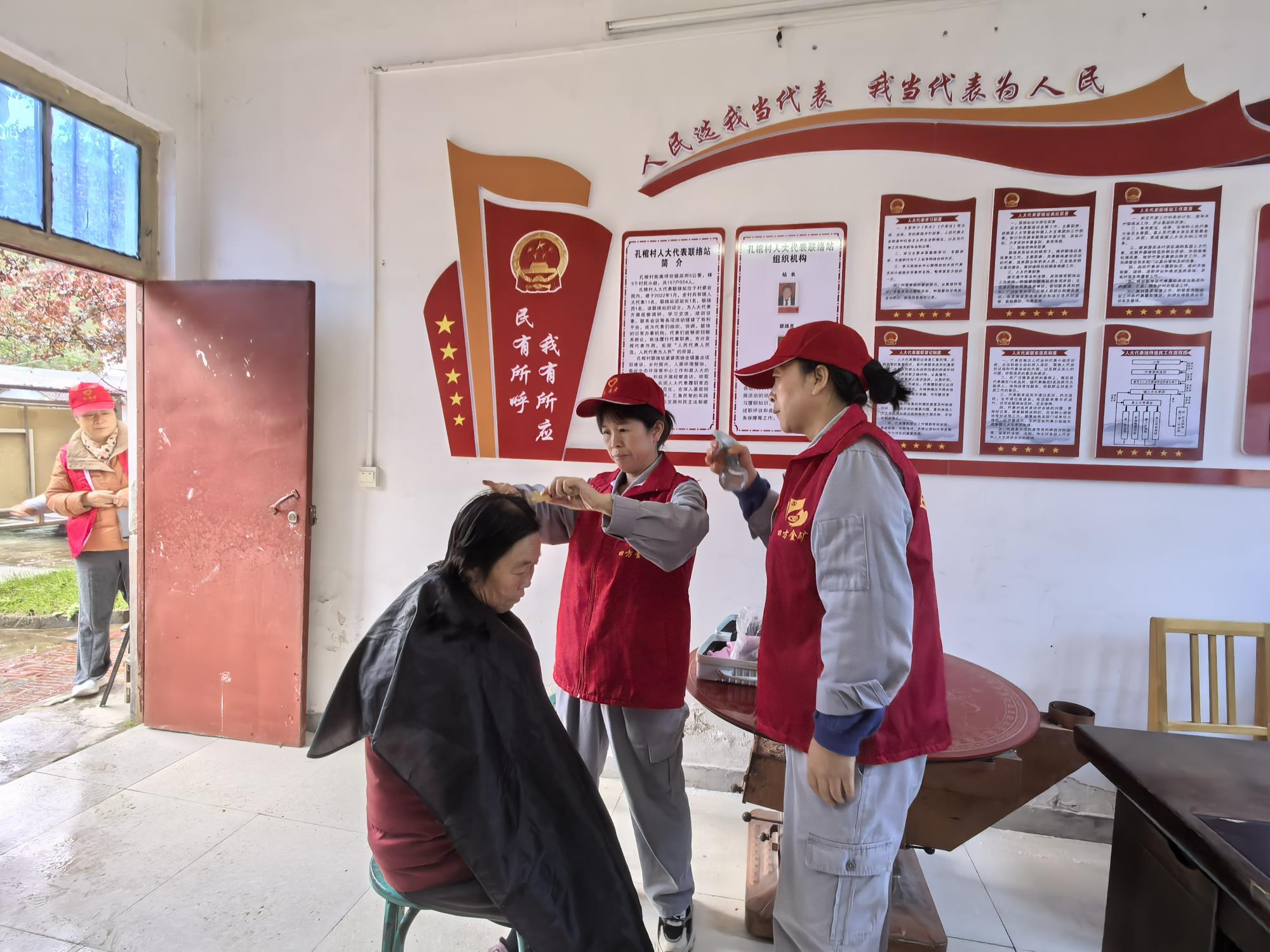 孔棺村是此次慰問的第一站。10月28日,公司志愿者聯(lián)合村委會,提前布置活動場地,邀請村里老人齊聚村委會會議室共話佳節(jié)?;顒又?,志愿者逐一遞上慰問禮包,耐心詢問老人身體狀況與生活所需,靜心傾聽村莊變遷的珍貴往事;擅長理發(fā)的志愿者現(xiàn)場搭起“臨時理發(fā)點”,細致修剪發(fā)型,讓老人們精神面貌煥然一新,歡聲笑語間滿是村企同心的溫情。