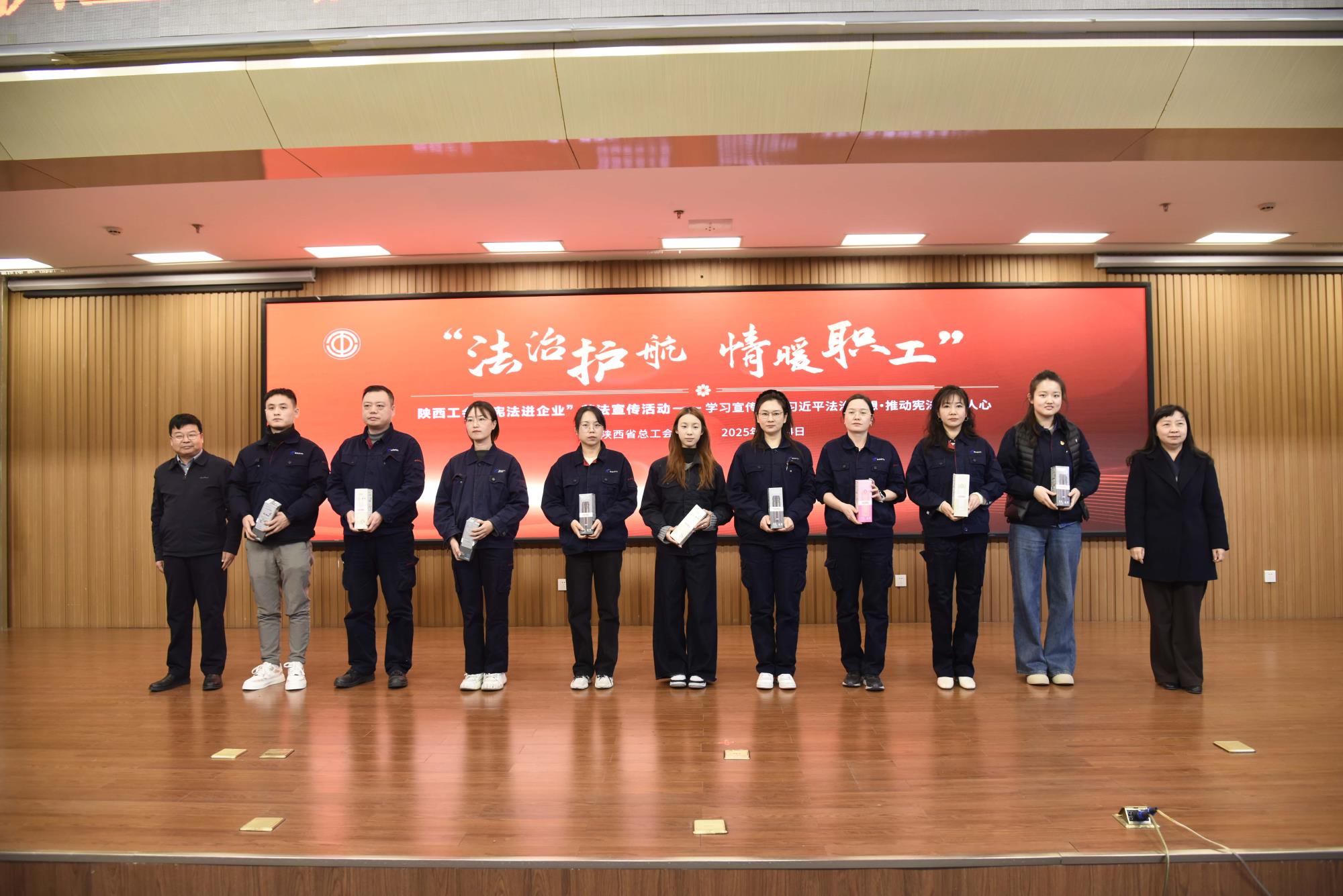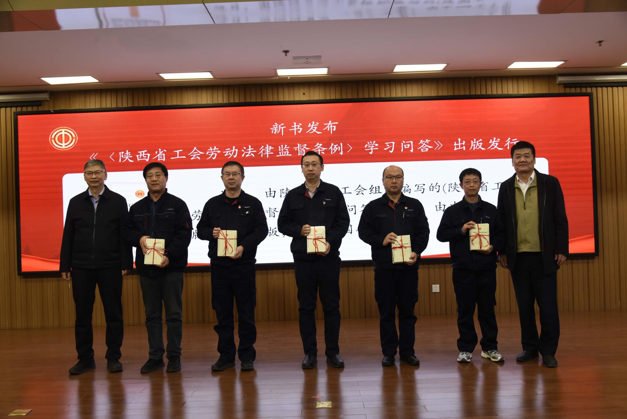 隨后,現(xiàn)場(chǎng)舉行了《<陜西省工會(huì)勞動(dòng)法律監(jiān)督條例>學(xué)習(xí)問答》新書發(fā)布暨贈(zèng)書儀式。杜佳鵬詳細(xì)介紹這本書的核心價(jià)值和實(shí)用意義;王占軍向?qū)氣伡瘓F(tuán)工會(huì)委員會(huì)贈(zèng)書;龐欣、劉小萍為參與法律知識(shí)現(xiàn)場(chǎng)互動(dòng)答題的職工頒獎(jiǎng)。