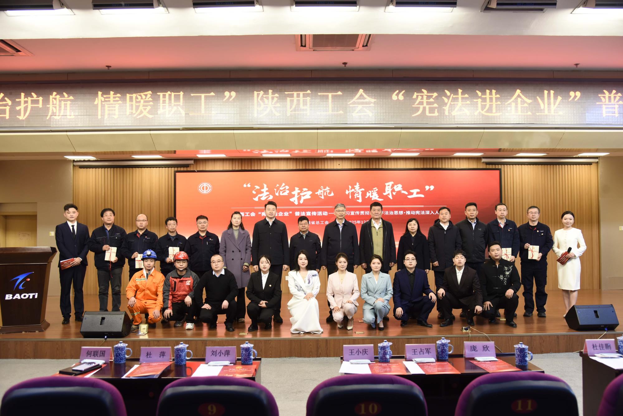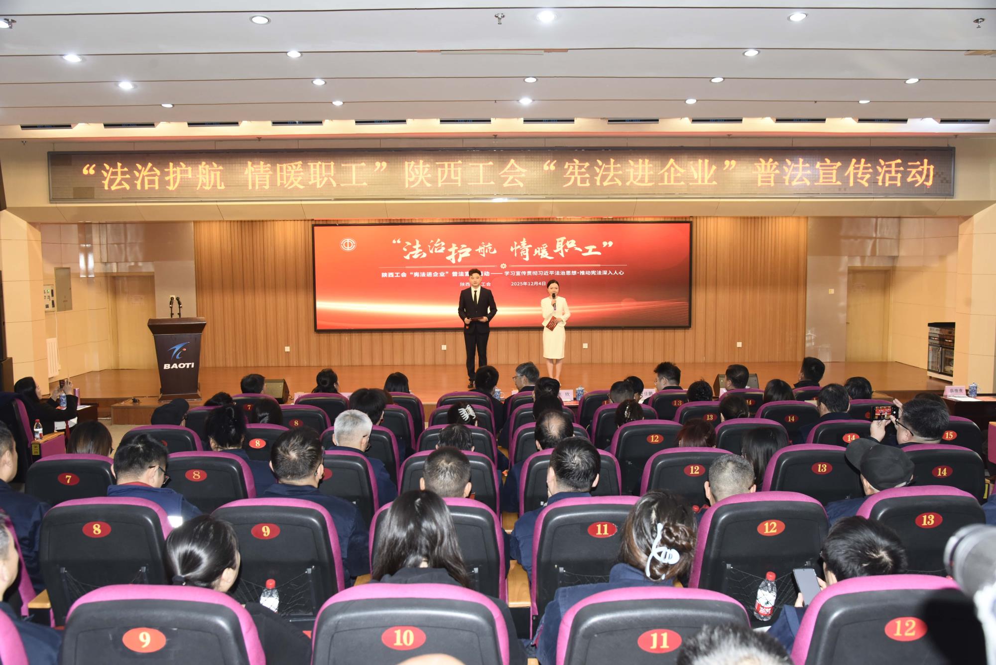 12月4日,第十二個(gè)國家憲法日當(dāng)天,由陜西省總工會(huì)主辦,省機(jī)械冶金建材工會(huì)、寶雞市總工會(huì)協(xié)辦的“法治護(hù)航·情暖職工”陜西工會(huì)“憲法進(jìn)企業(yè)”普法宣傳活動(dòng)在寶鈦集團(tuán)寶鈦賓館七樓學(xué)術(shù)報(bào)告廳舉行。